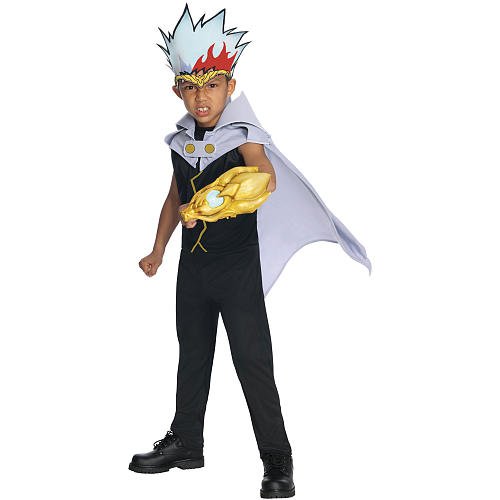 Includes jumpsuit with connected cape, headpiece and arm defend. Does no longer embody footwear. This is an officially licensed Beyblade product.