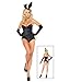 Leg Avenue 4 Piece Bunny Underwire Satin Teddy Clear Straps Tail And Ear Headband, Black, Small Feature