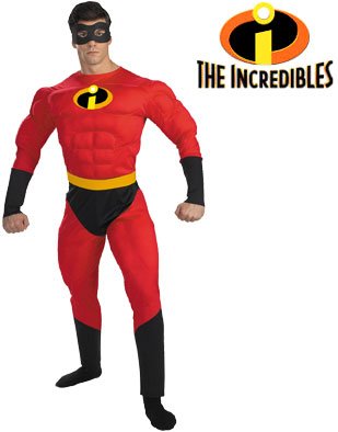 This is an formally liscensed costume from the movie from ©Disney/Pixar, The Incredibles. In Red, Black and Yellow, this outfit features a full muscle physiquesuit and eye masks. Socks/shoes now not included.