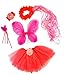 Pink & Hotpink 5 Piece Flower Fairy Princess Costume Set. Includes Tutu, Wings, Wand and Flower Halo Feature