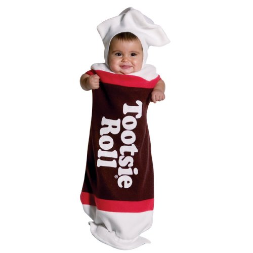 The Tootsie Roll Baby Bunting Costume includes: A Polyester laminated onto foam suit that creates an awfully durable and snuggly costume for child.Size 3-9 months..