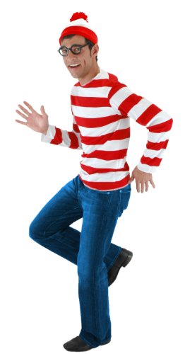 Where will looking eyes in finding you when you are out adventuring? Wear our grownup sized Where's Waldo Kit and in finding out! This formally licensed package includes a purple and white striped shirt, character glasses, and a hat with pom pom.